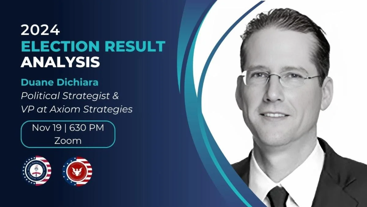 We’re honored to welcome Duane Dichiara, a seasoned political strategist and insider, to guide us through the complexities of the 2024 election outcome. Mr. Dichiara’s extensive background includes serving as Chief of Staff to three State Assembly members and now as Vice President of Axiom Strategies, a national GOP campaign consulting firm. Recognized as one of the nation’s top political messaging experts, Dichiara has earned multiple awards for his influential political mailings.