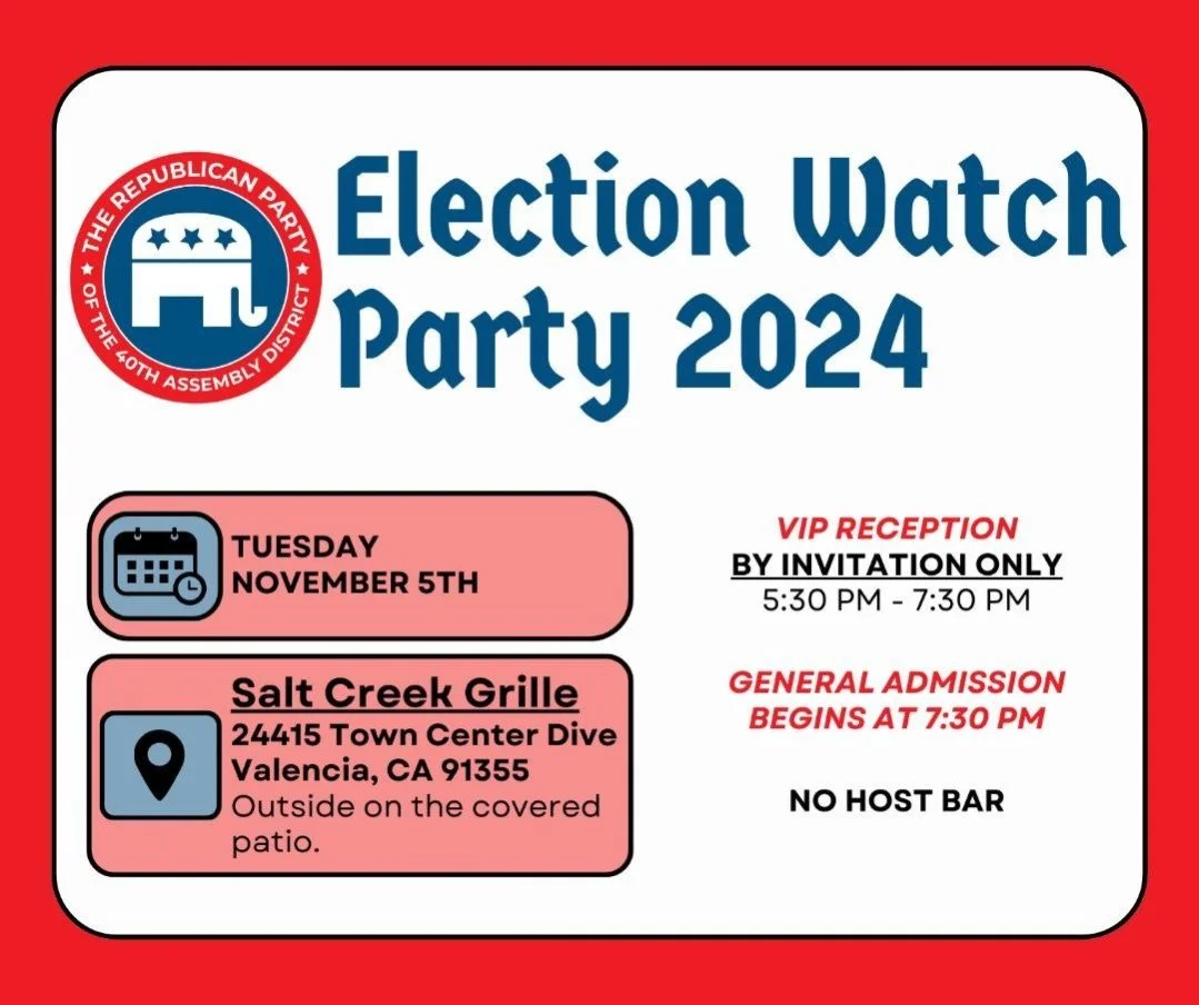 Back to All Events Santa Clarita Election Watch Party Tuesday, November 5, 2024 4:30 PM 7:00 PM Google Calendar ICS