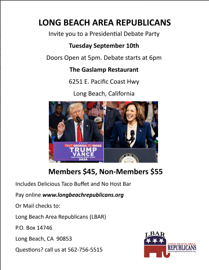 Join the Long Beach Area Republicans at their presidential debate watch party! Be in community with fellow conservatives as we cheer on President Trump!