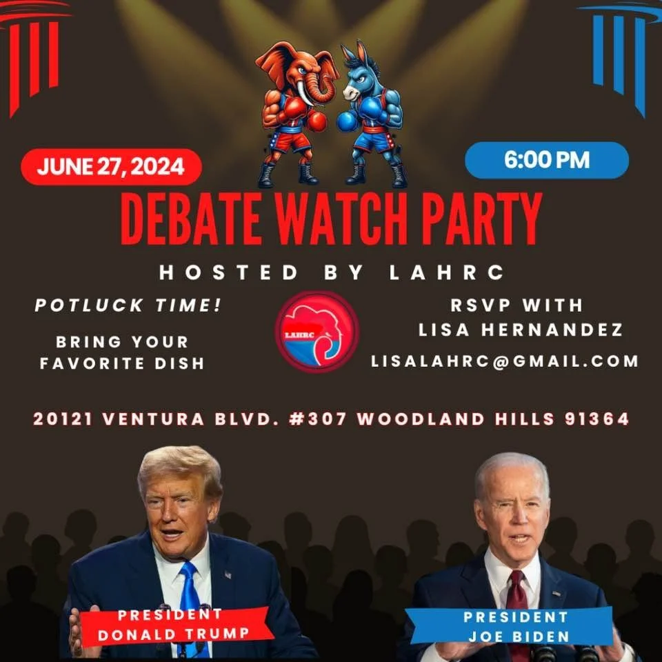 You are invited to a Presidential Debate Watch Party hosted by the Los Angeles Hispanic Republican Club! Join them for food, fun and verbal fireworks.